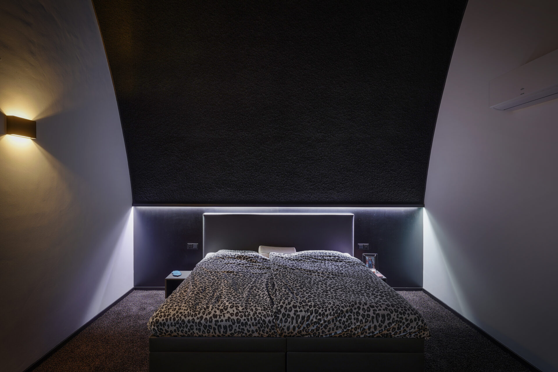 Verlichting: Sfeervolle spots en wandlampen, perfect afgestemd op het interieur.